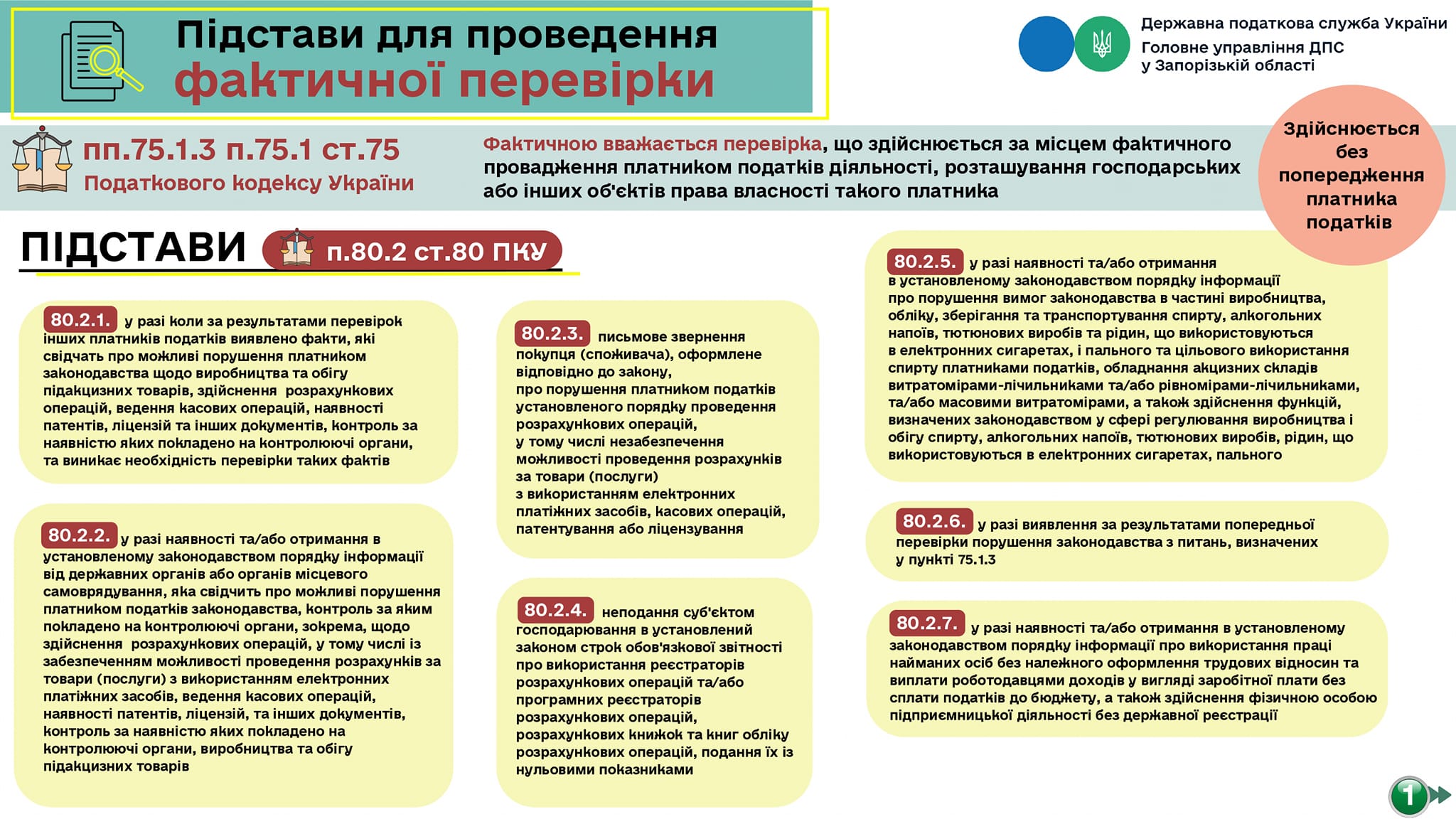 Податківці можуть провести фактичну перевірку за наявності хоча б однієї із таких семи підстав (п. 80.2 ПК).