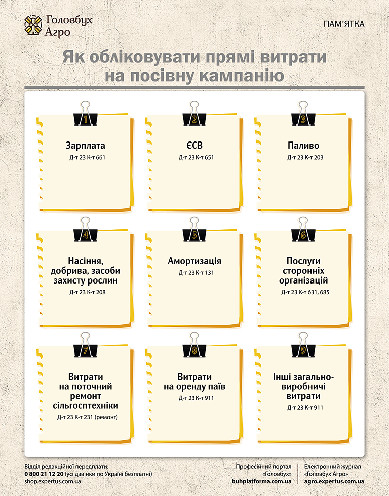 Коли засіватимете посівний матеріал, обліковуйте відпуск зі складу добрив, заробітної плати тощо. Які витрати сформують прямі витрати у рослинництві та які проведення зробити, навели в Памʼятці.
