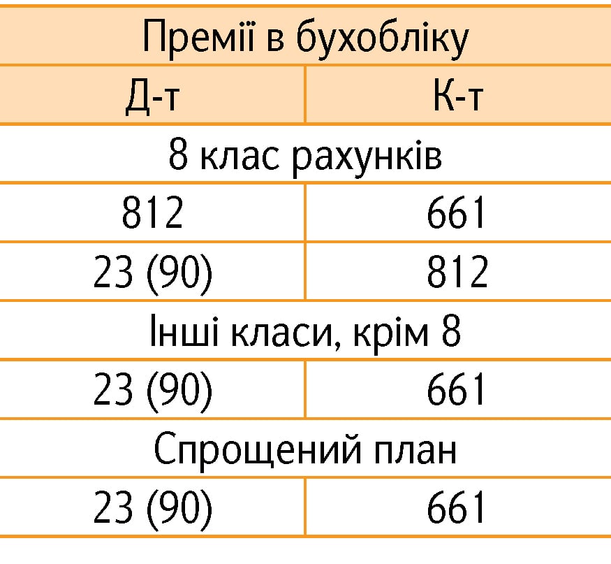 - Д-т 812 «Премії та заохочення» — К-т 661 «Розрахунки за заробітною платою»