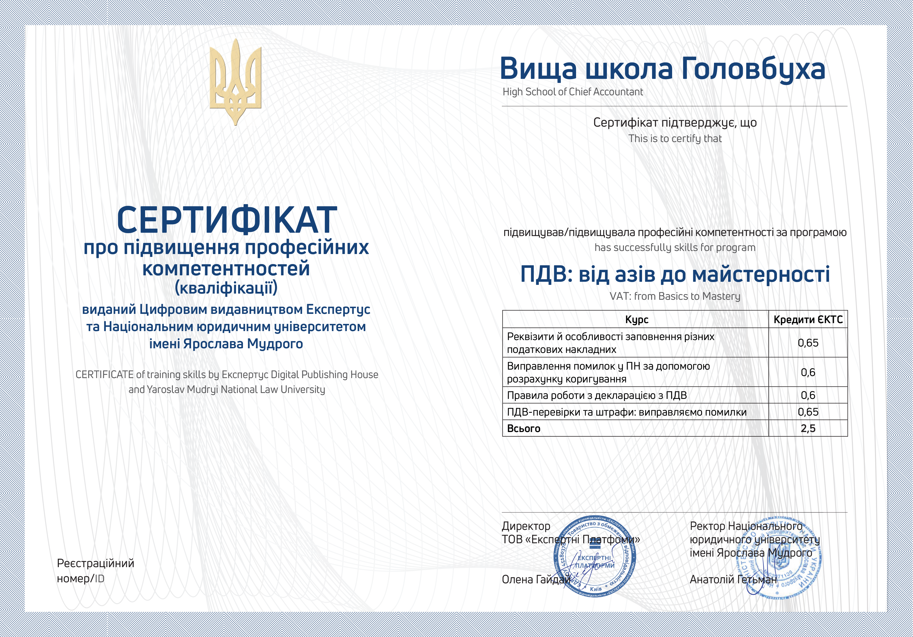 Мало не забули! По завершенню навчання ви отримаєте сертифікат про підвищення кваліфікації від Національного юридичного університету імені Ярослава Мудрого.