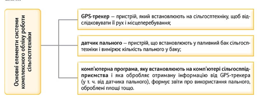 Основні елементи системи комплексного обліку роботи сільгосптехніки наведено на Схемі.
