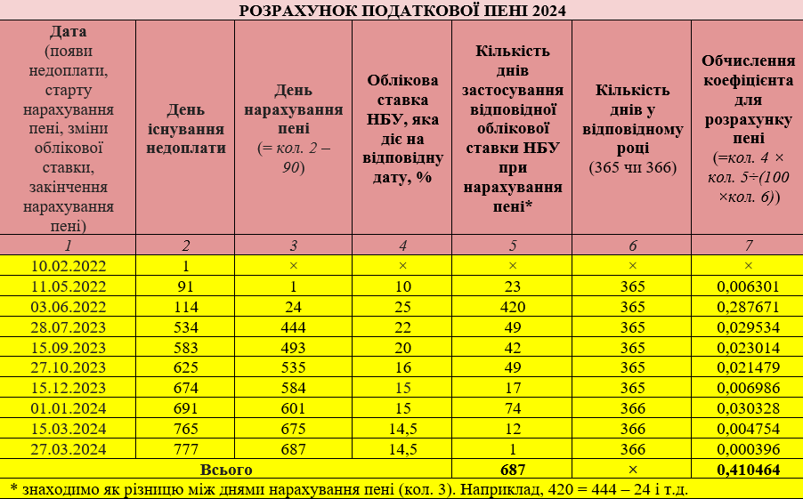 - при обычных обстоятельствах существования «самоштрафа» 5%, если получилась недоплата по налогу на прибыль. Исключения есть во время COVID-карантина и военного положения. Кроме того, с 91 дня просрочки должна быть начислена еще и пеня (пп. 129.1.3 НК). Она начисляется за каждый день просрочки платежа, включая день погашения обязательства, в расчете на 100% годовых учетной ставки НБУ, действующей на каждый такой день (абз. 3 п. 129.4 НК). Такие самоштраф и пеня уплачиваются в срок, установленный для уплаты обязательства по отчетной декларации, в составе которой подается Приложение ВП к декларации, т.е. на протяжении 10 к. дней по истечении предельного срока подачи декларации за отчетный период.