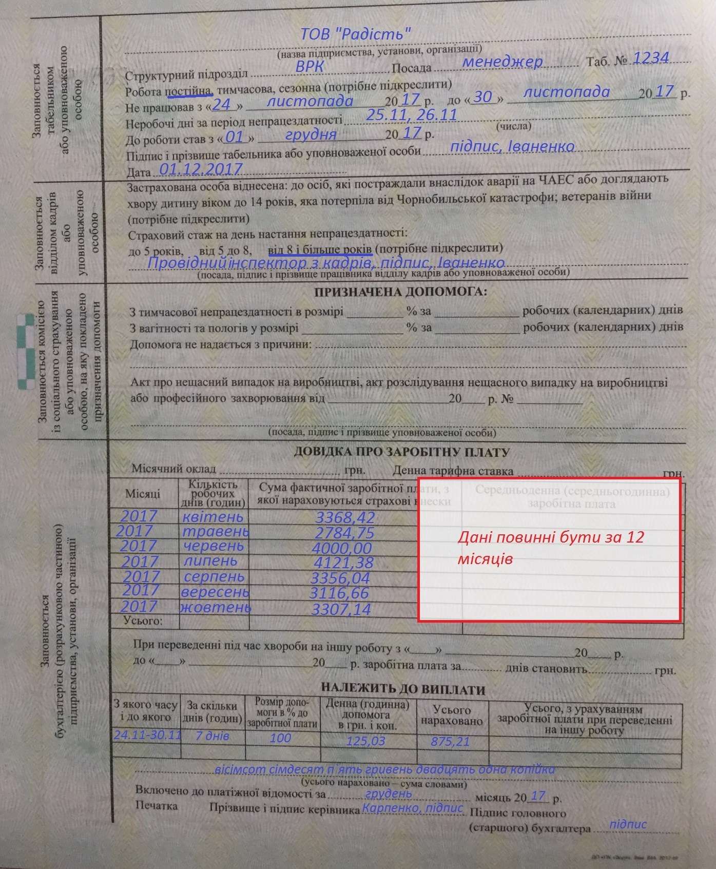 Справка о заработной плате и начисленные суммы пособия по нетрудоспособности в
