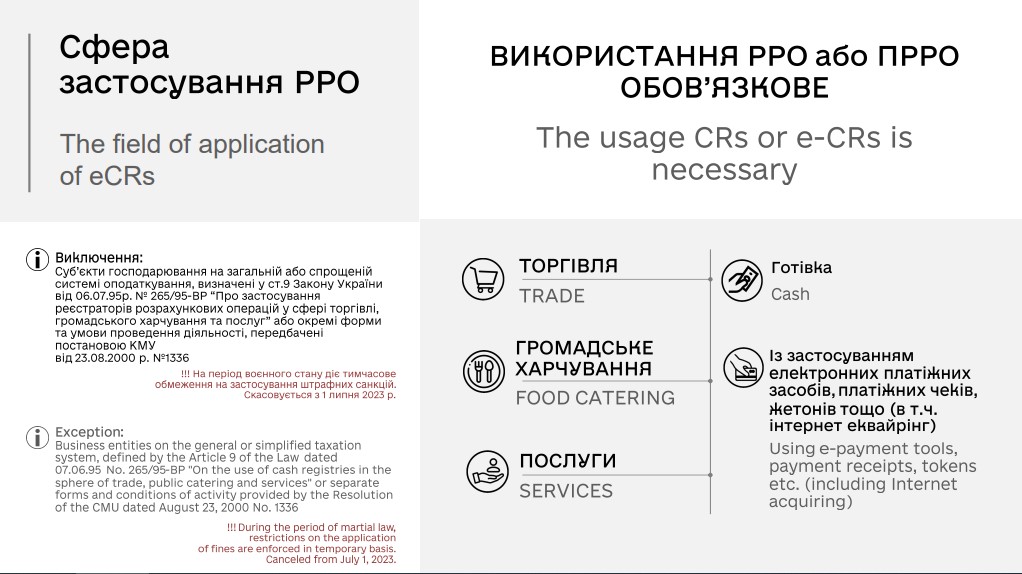 Без РРО могут торговать и предоставлять услуги только ФЛП на первой группе. Всем остальным — кассовый аппарат, если производите расчетные операции с точки зрения Закона об РРО. Объем доходов не имеет значения. Исключение из правил – в статьях 9 и 10 Закона об РРО.