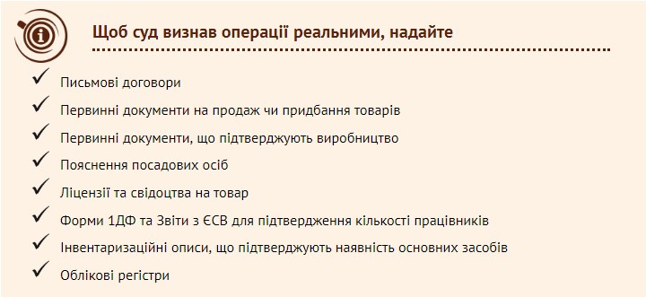 Які документи надати, щоб суд визнав операції реальними