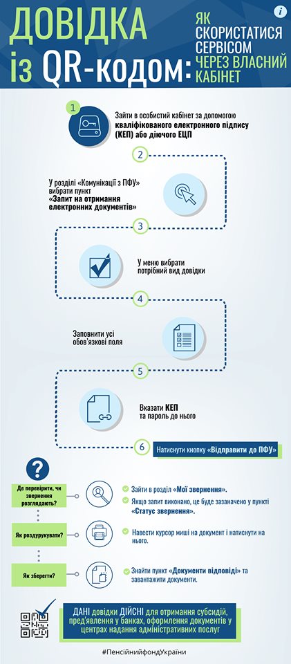 Скачати детальну інструкцію, як скористатись послугоюCервіс, який доступний на вебпорталі електронних послуг ПФУ – отримання довідок, достовірність яких підтверджується QR-кодом.