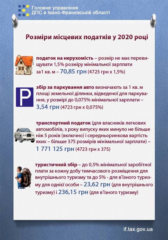 Шпаргалка від податківців про розміри місцевих податків у 2020 році.