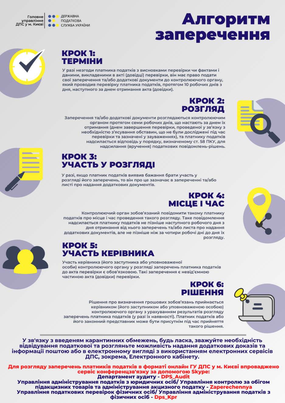 Зверніть увагу, мораторій на проведення перевірок не позбавляє платників податків права подавати заперечення до актів перевірок, завершених до запровадження мораторію, та оскаржувати прийняті за їх результатами податкові повідомлення-рішення.
