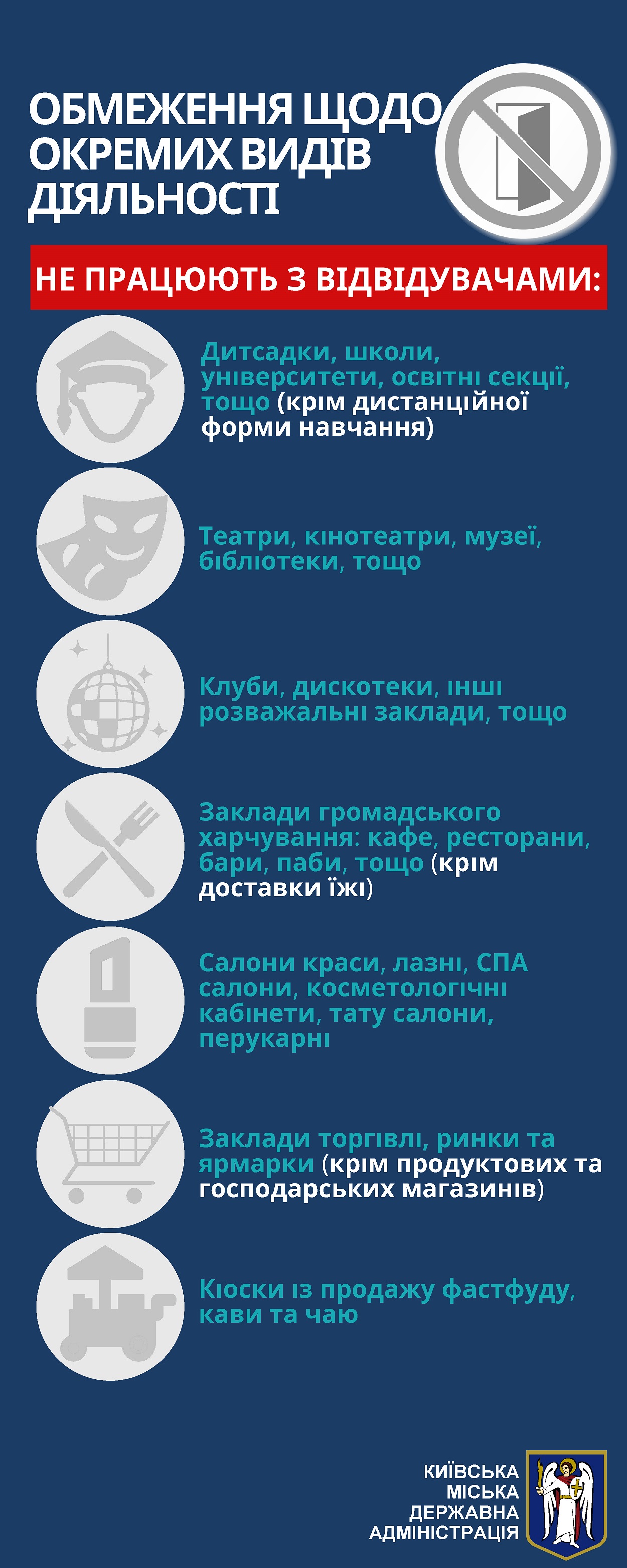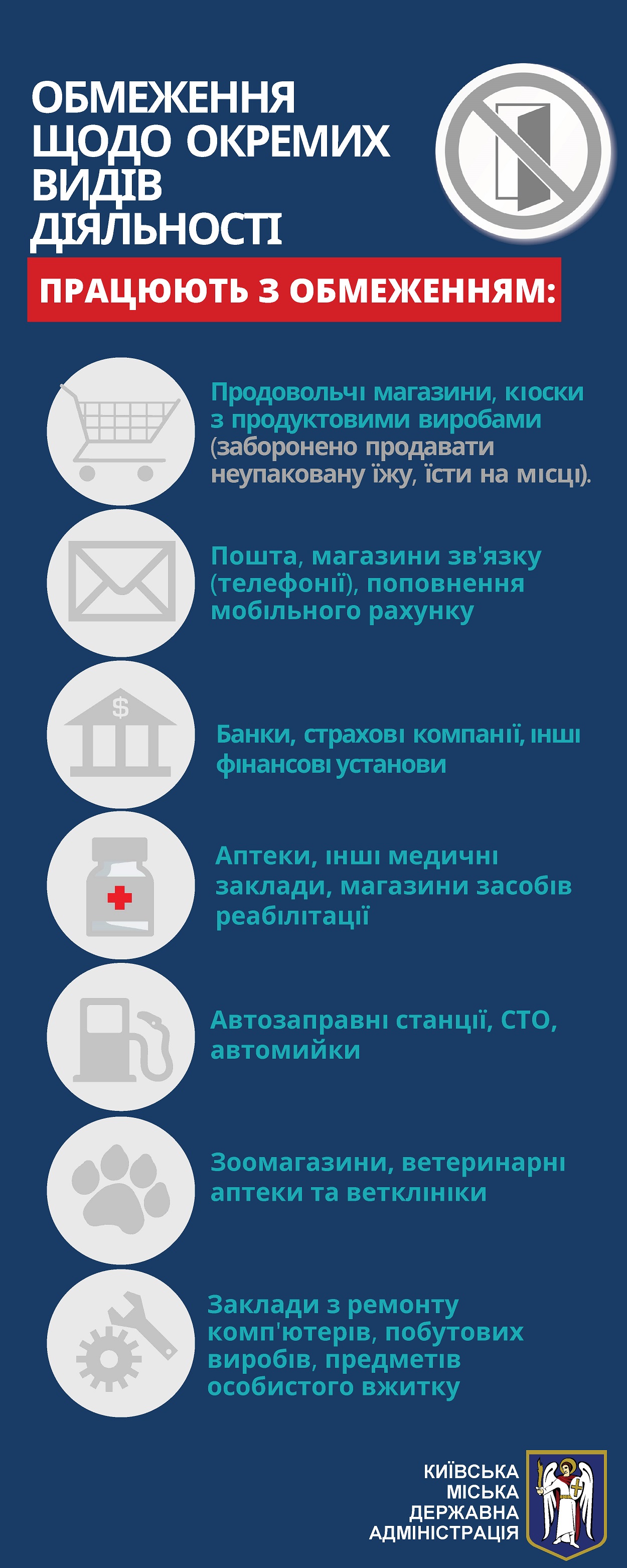 «Із понеділка, 6 квітня, у столиці, як і в інших містах України, почнуть діяти нові обмеження, затверджені Постановою Уряду №211. Також міська влада затвердила новий перелік заходів, спрямованих на запобігання поширенню гострої коронавірусної хвороби COVID-19.