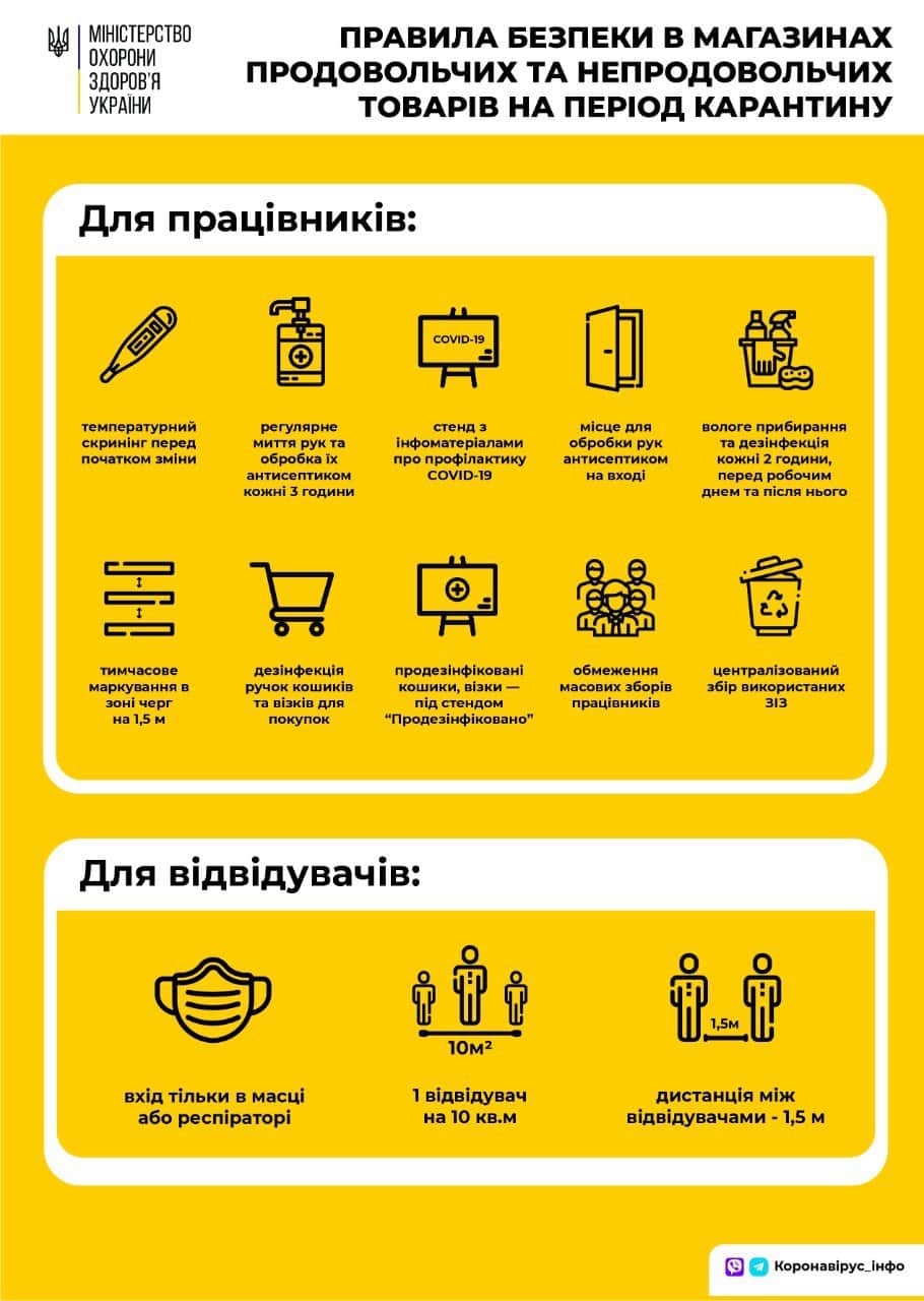 Правила роботи під час карантину для магазинів — інфографіка МОЗ