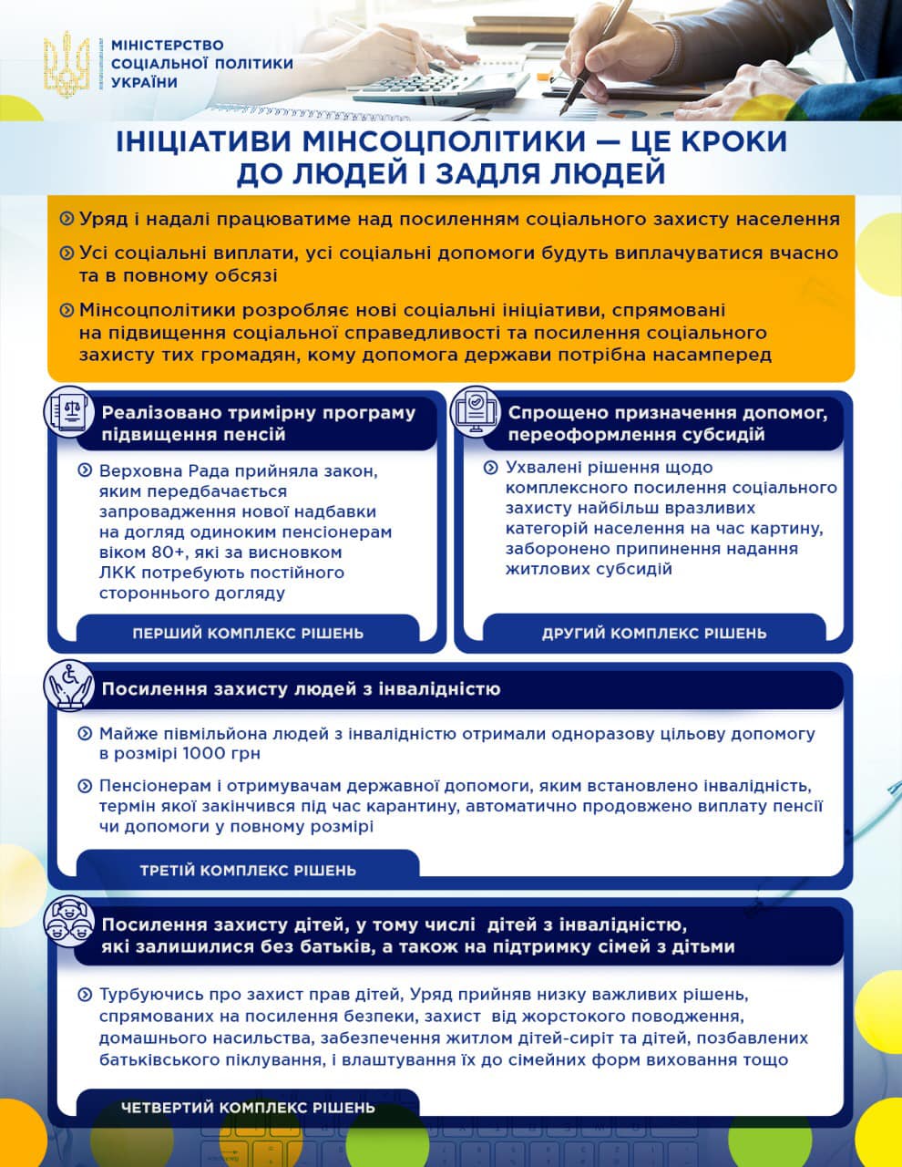 По-друге, 10,6 млн пенсіонерів та одержувачів соціальних допомог, розмір пенсій та виплат яким не перевищував 5 тис. гривень, отримали одноразову грошову допомогу в розмірі 1000 гривень.