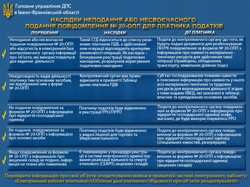 Податківці розповіли про наслідки неподання або несвоєчасного подання повідомлення № 20-ОПП для платника податків.