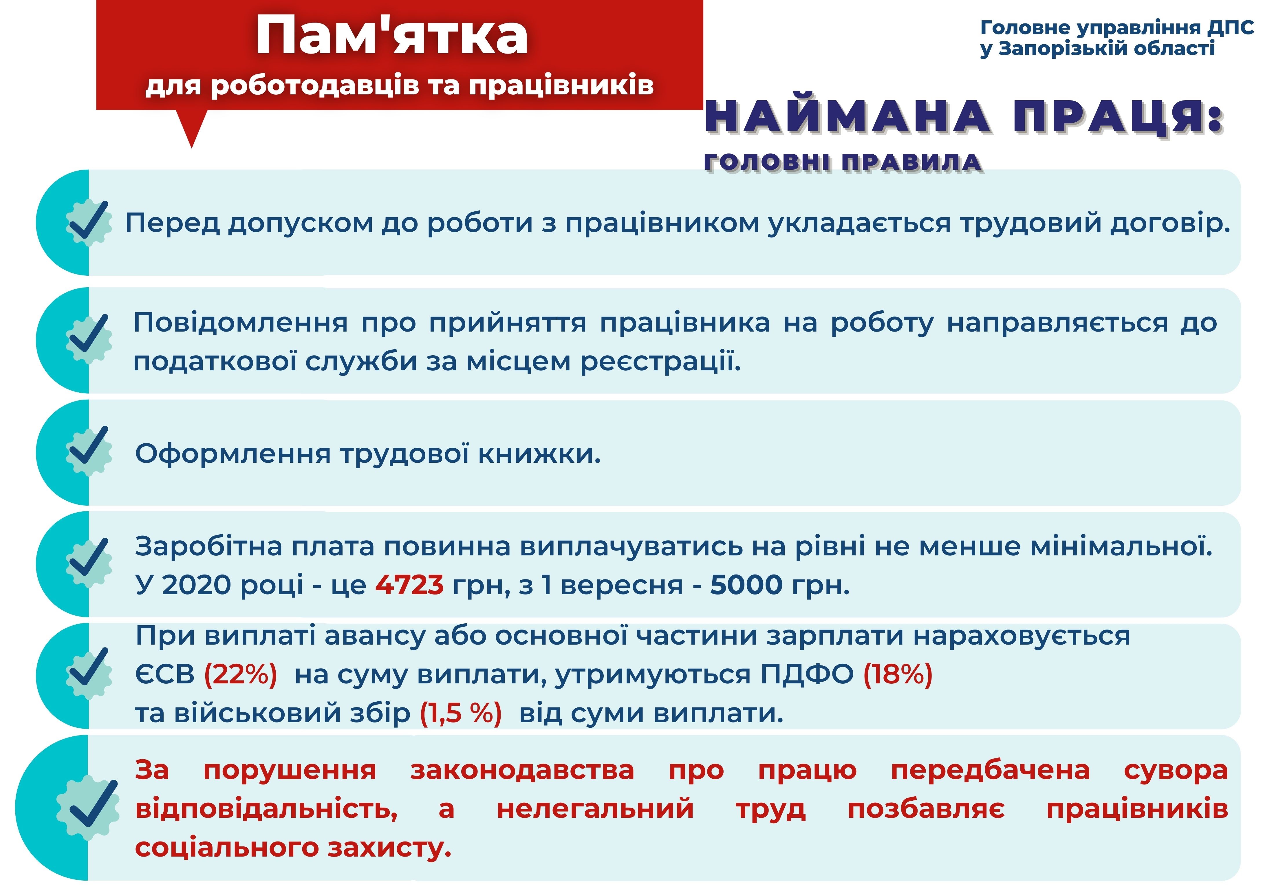 - заробітна плата повинна виплачуватися на рівні не менше мінімальної (у 2020 році – з 1 січня 4723 грн, а з 1 вересня 5000 грн);