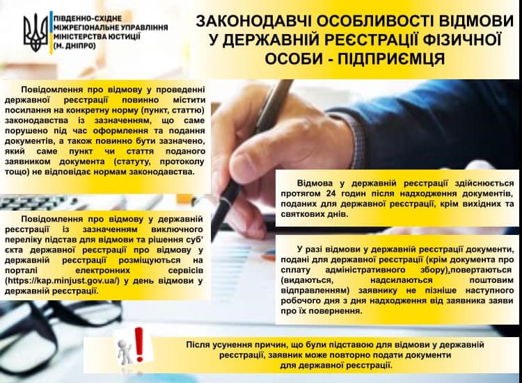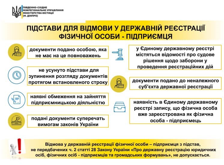 Які підстави для відмови у державній реєстрації ФОП: інфографіка від Мін’юсту