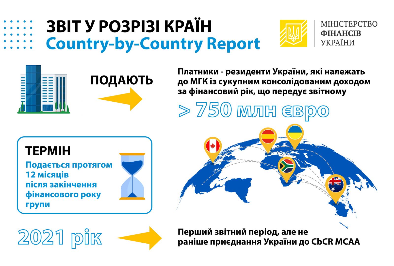 Від сьогодні, 19 лютого, набув чинності наказ Мінфіну від 14.12.2020 № 764, яким затверджено форму та порядок подання звіту в розрізі країн міжнародної групи компаній (Country-by-Country Report).