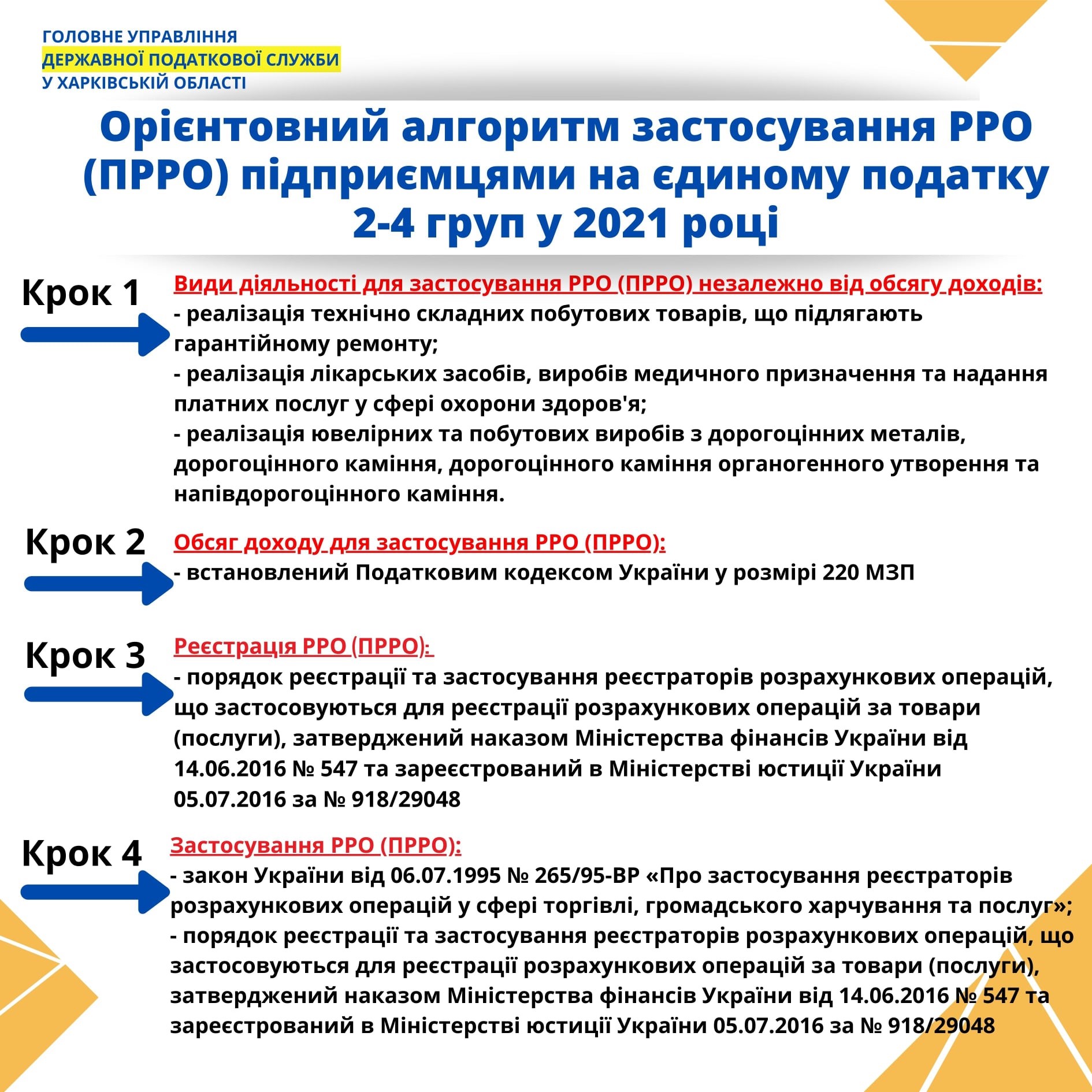 Податківці розробили пам’ятку, у якій розписали орієнтовний алгоритм застосування РРО чи ПРРО підприємцями-єдинниками 2-4 груп у 2021 році.