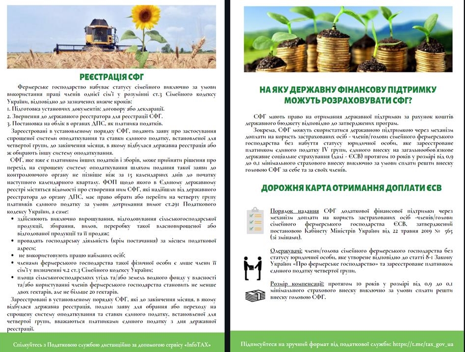 Податківці нагадали, що чинне законодавство України передбачає можливість створення та функціонування сімейних фермерських господарств. У пам’ятках дізнайтеся про те, яких умов треба дотримати, аби створити сімейне фермерське господарство, як його зареєструвати та на яку фінансову підтримку можна розраховувати.