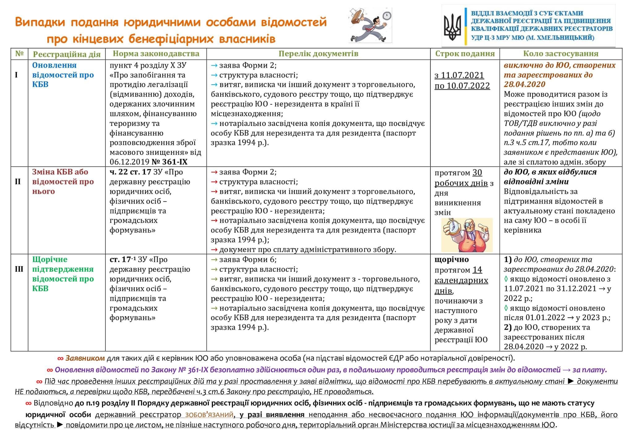 Наразі фахівці Мін'юсту роз'яснили про терміни, упродовж яких створеним до 28.04.2020 року юрособам вперше необхідно підтвердити відомості про кінцевих бенефіціарів: