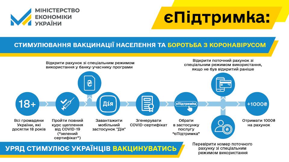 Щоб зберегти високі темпи вакцинації та додаткового мотивувати людей зробити щеплення, Уряд з ініціативи Президента ухвалив рішення виплатити по 1 тис. грн всім повністю вакцинованим громадянам.