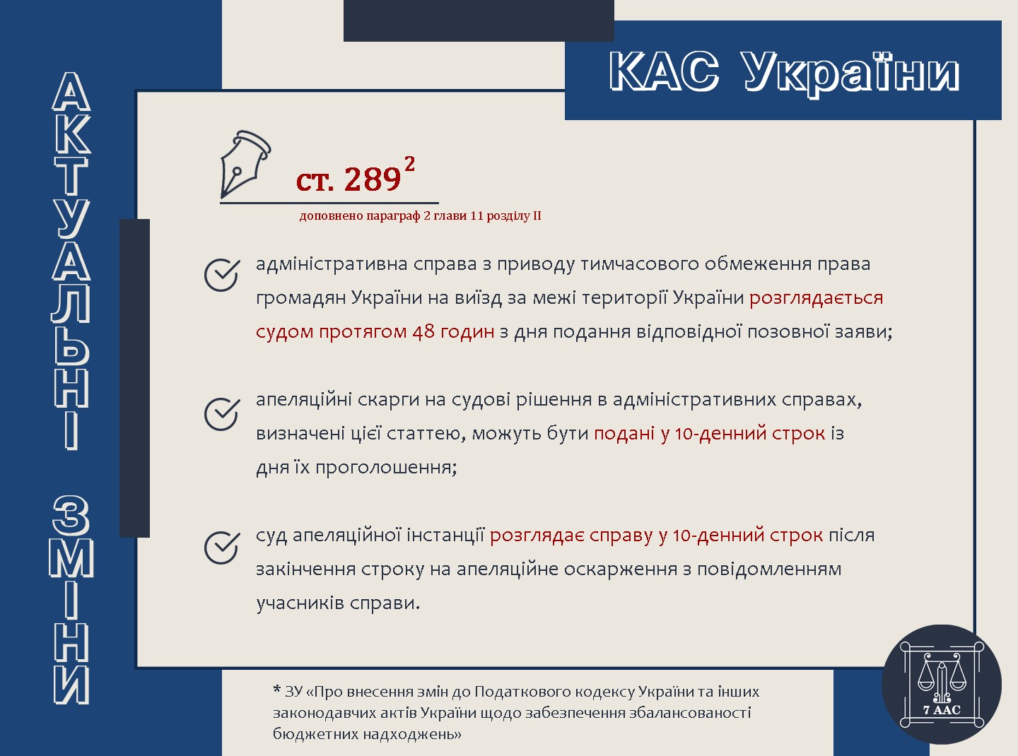 З 01.01.2022 чинний Закон України від 30.11.2021 №1914-IX, яким, зокрема, внесли зміни до Кодексу адміністративного судочинства України (КАС).