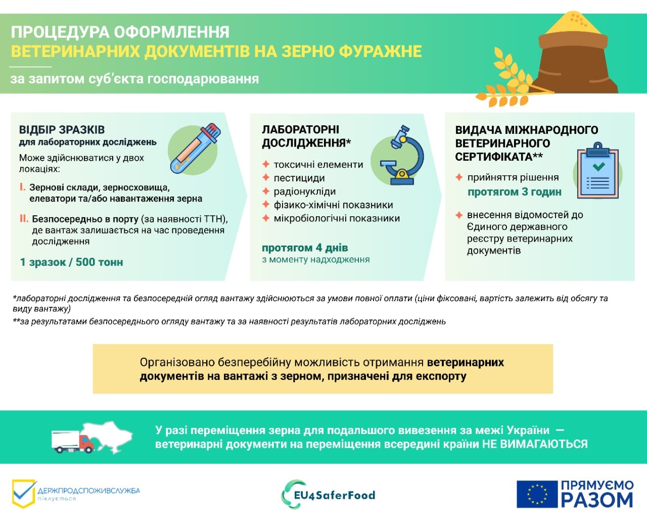 Держспоживслужба на своій офіційній сторінці у Фейсбуці повідомила про терміни та процедуру оформлення ветеринарних документів на зерно фуражне, що призначене для експорту