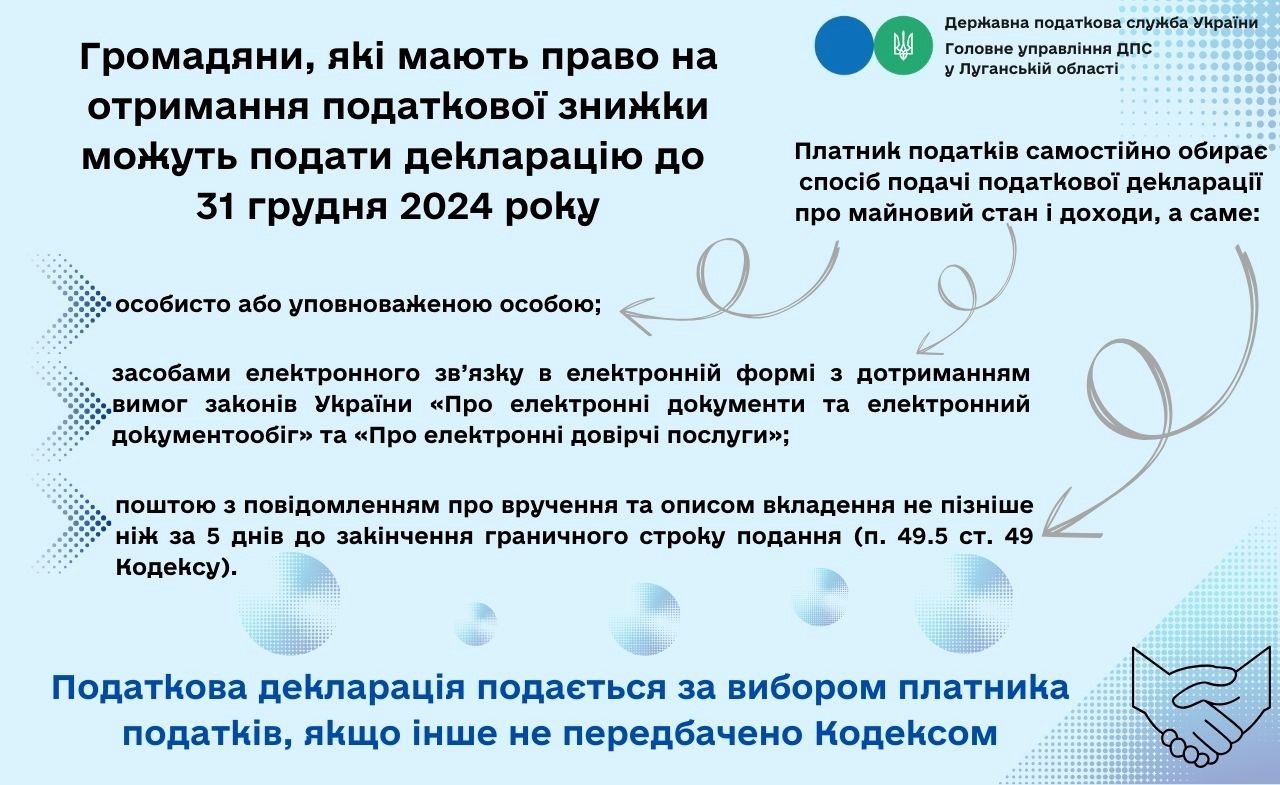 Для отримання податкової знижки подайте майнову декларацію до 31 грудня 2024 року