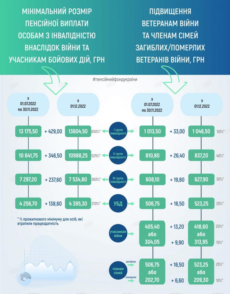 З 01.12.2022 окремі категорії громадян отримуватимуть пенсії у більшому розмірі.