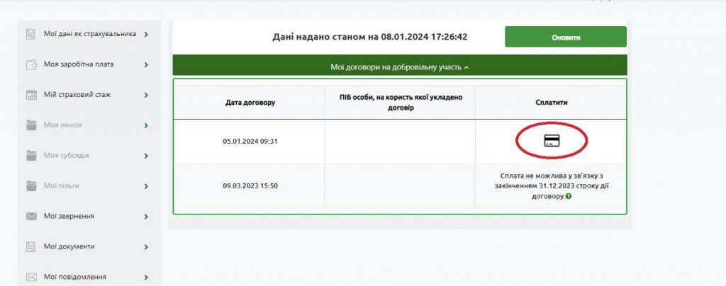 З переліком укладених вами договорів та датою їх підписання можна ознайомитись у розділі «Договори на добровільну участь».