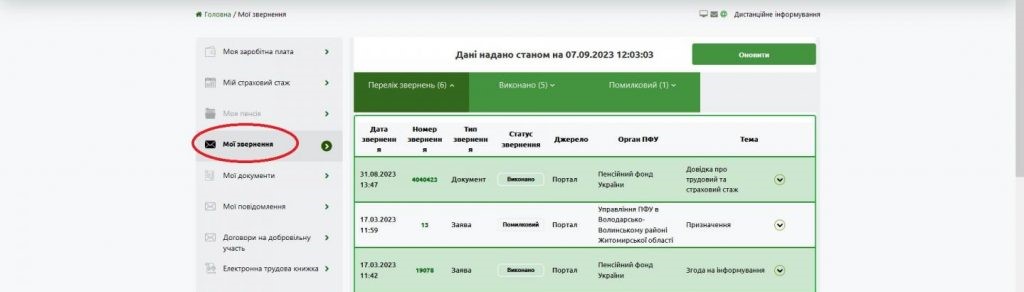 8. Результат обробки поданої заяви можете переглянути в особистому кабінеті в розділі «Мої звернення».
