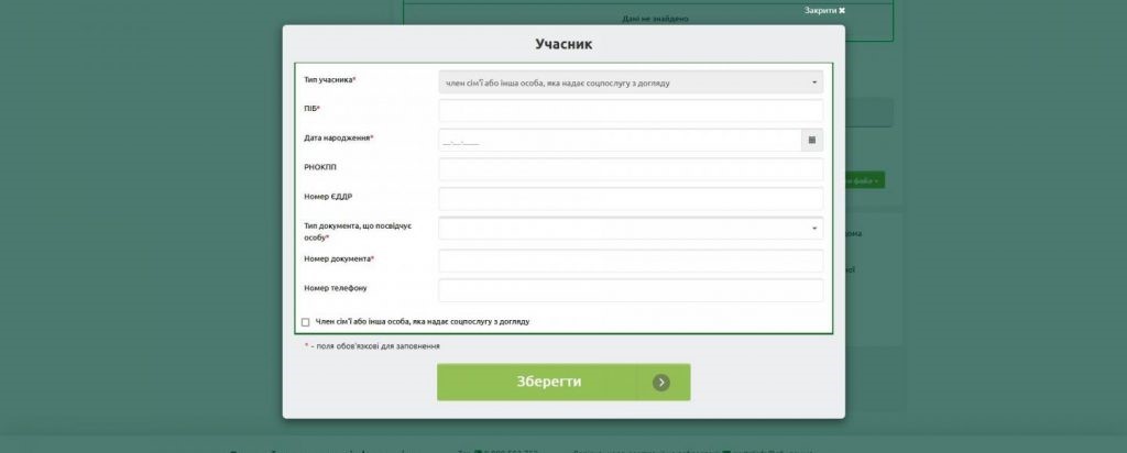 - Додайте інформацію про члена сім’ї або іншу особу, яка здійснюватиме догляд, натиснувши кнопку «Додати».