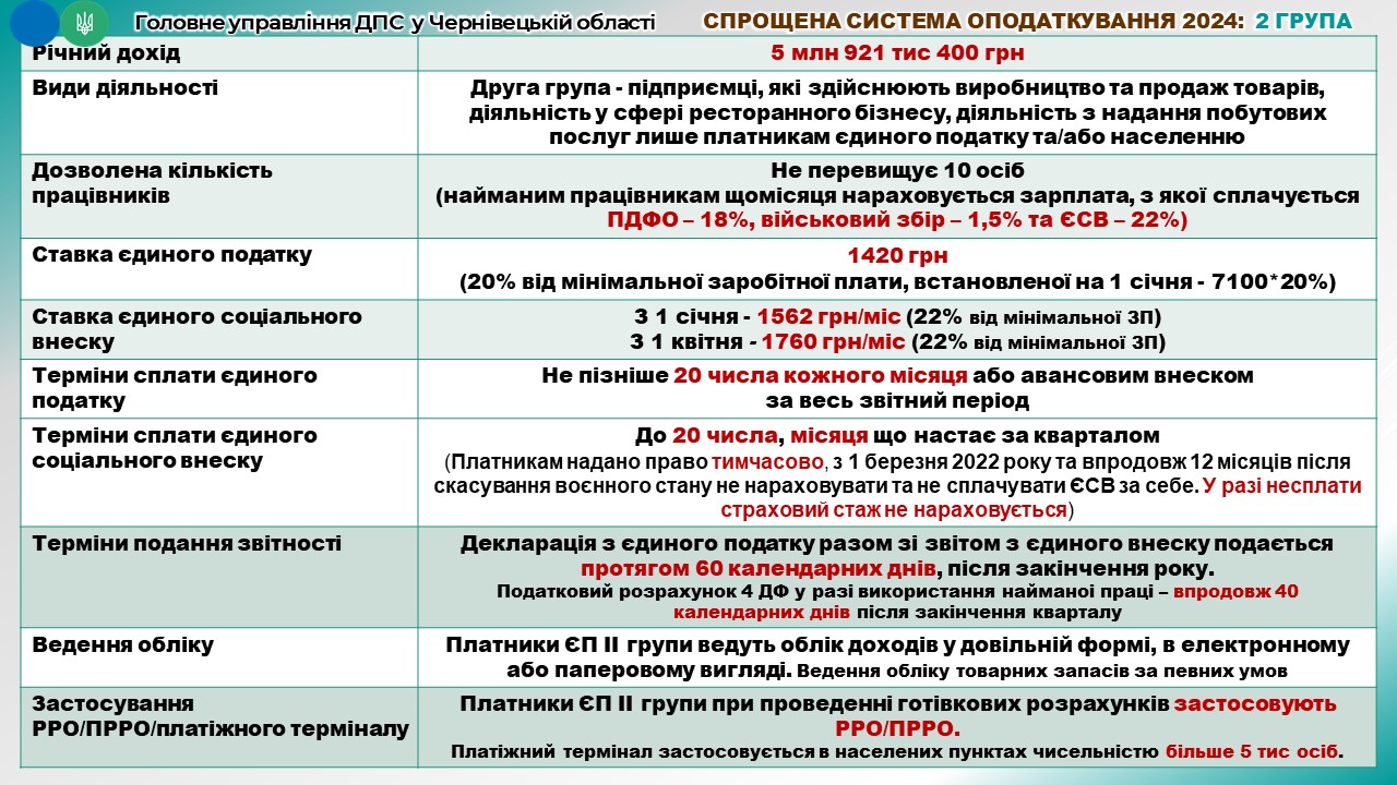 Податківці нагадують, що з 01.08.2023, з дати набрання чинності Закон України «Про внесення змін до Податкового кодексу України та інших законів України щодо особливостей оподаткування у період дії воєнного стану» від 30.06.2023 № 3219-IX, відновили сплату єдиного податку для платників єдиного податку 1 та 2 групи.