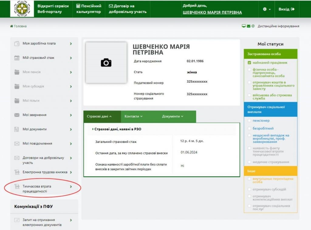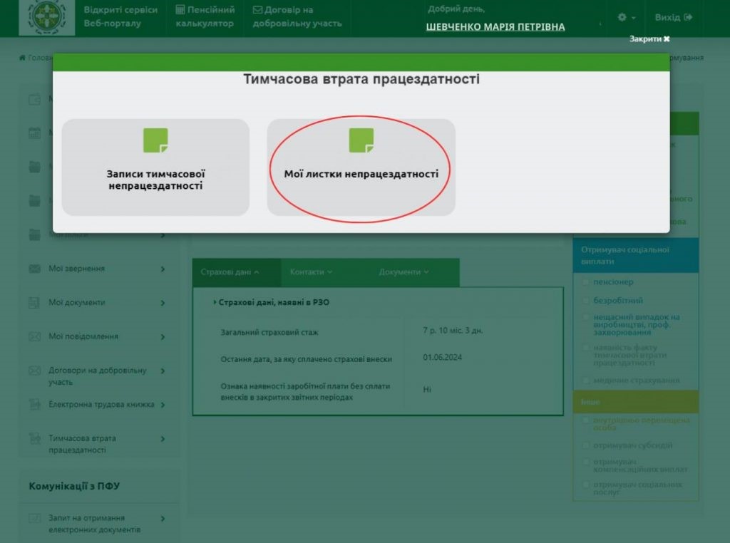 2. Оберіть у лівому боковому меню вкладку «Тимчасова втрата працездатності».