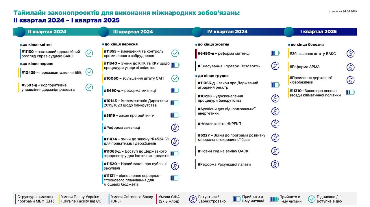 - треба прийняти 12 законів, з них ще 10 ще не прийняли;