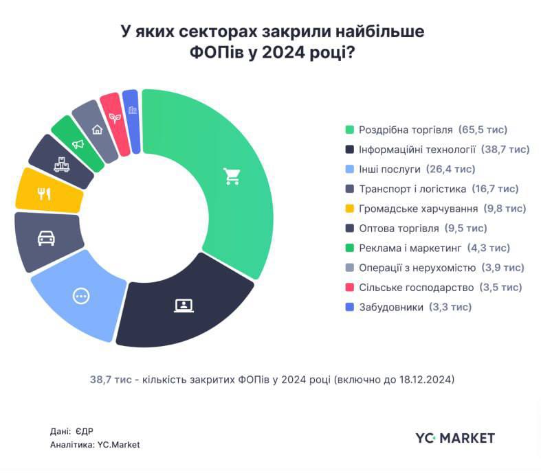 Так, приріст закритих ФОПів у 2024 році (38,7 тис.) склав понад 29% відносно 2023 року (29,9 тис.).
