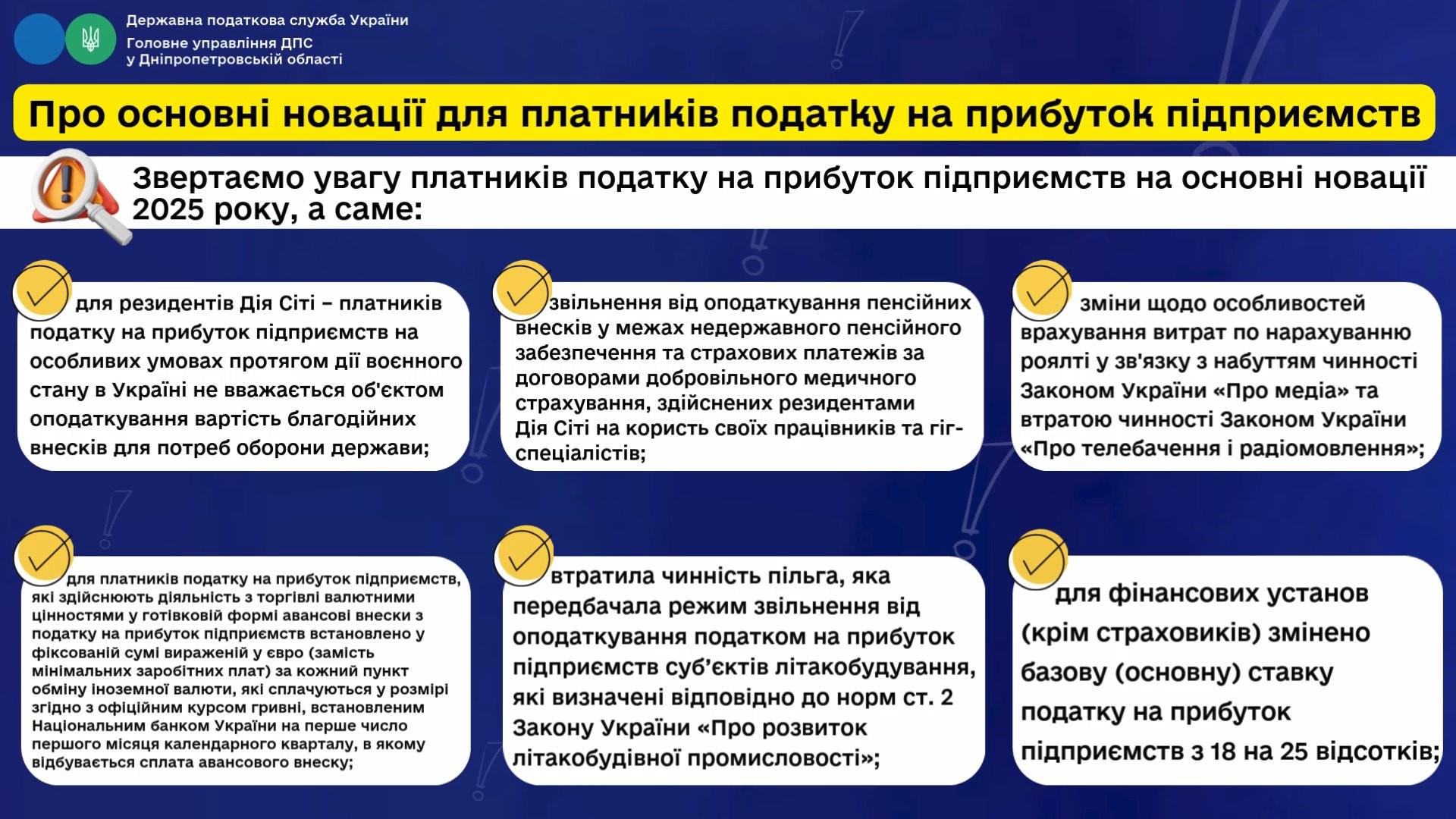 Основні новації 2025 року для платників податку на прибуток підприємств: